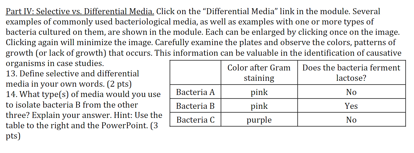 Solved Part IV Selective vs. Differential Media. Click on