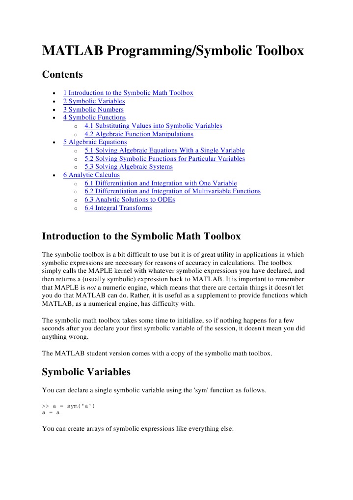 SOLVED MATLAB 242 Differentiation using symbolic expressions in