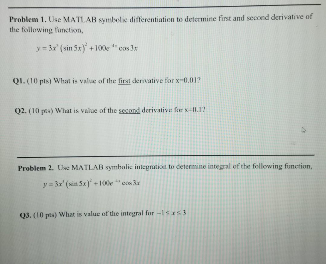 Solved Problem 1. Use MATLAB symbolic differentiation to