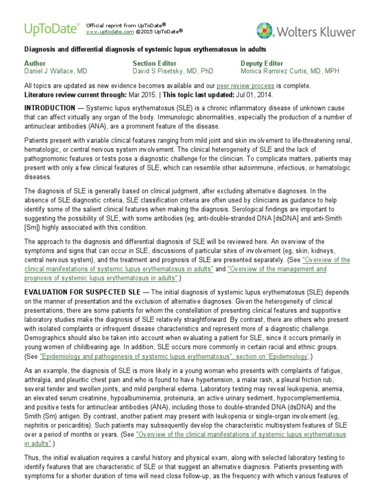 (PDF) Diagnosis and Differential Diagnosis of Systemic Lupus