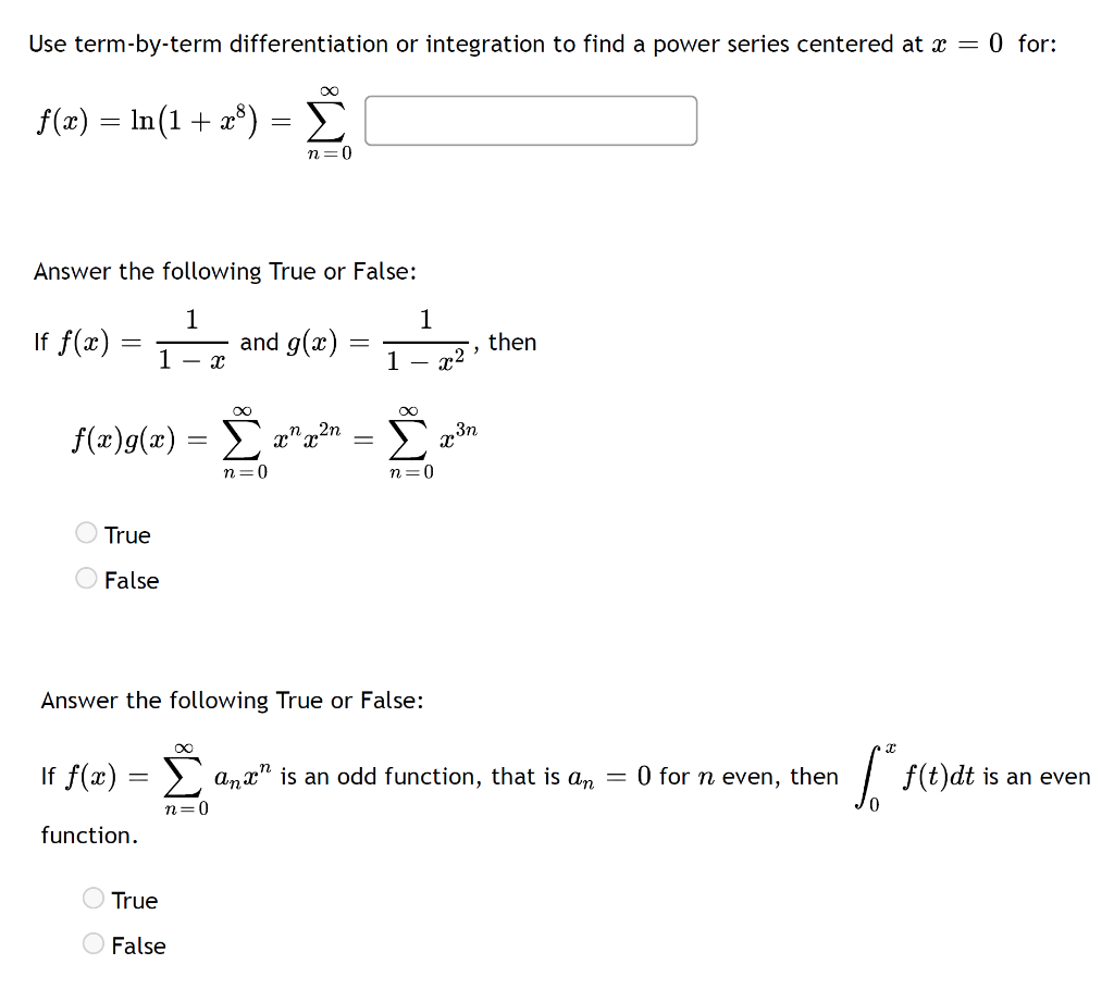 Solved TermbyTerm Differentiation and Integration for