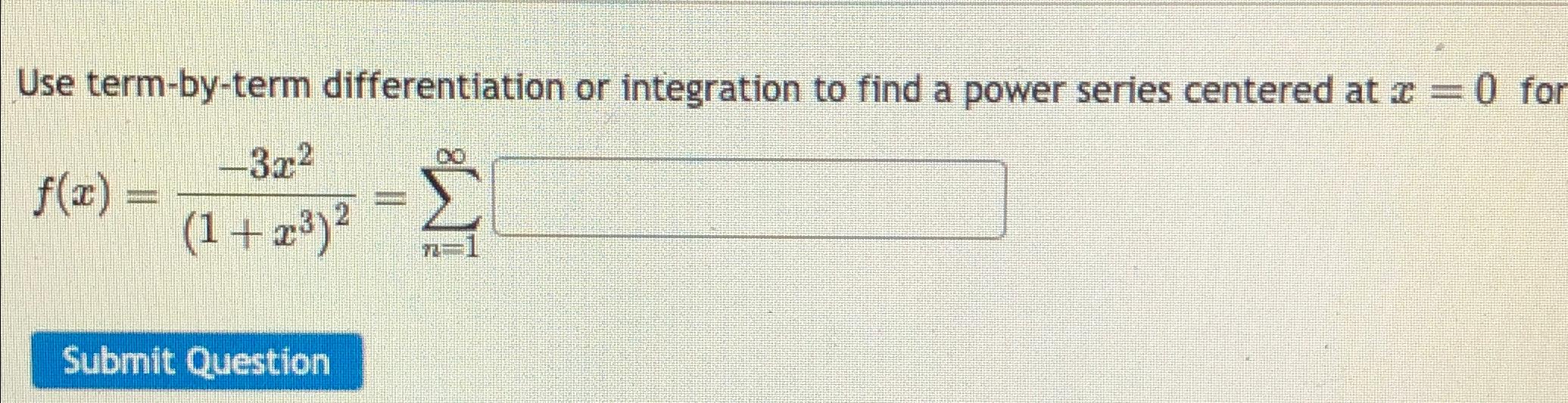 Solved Question 11Use termbyterm differentiation or