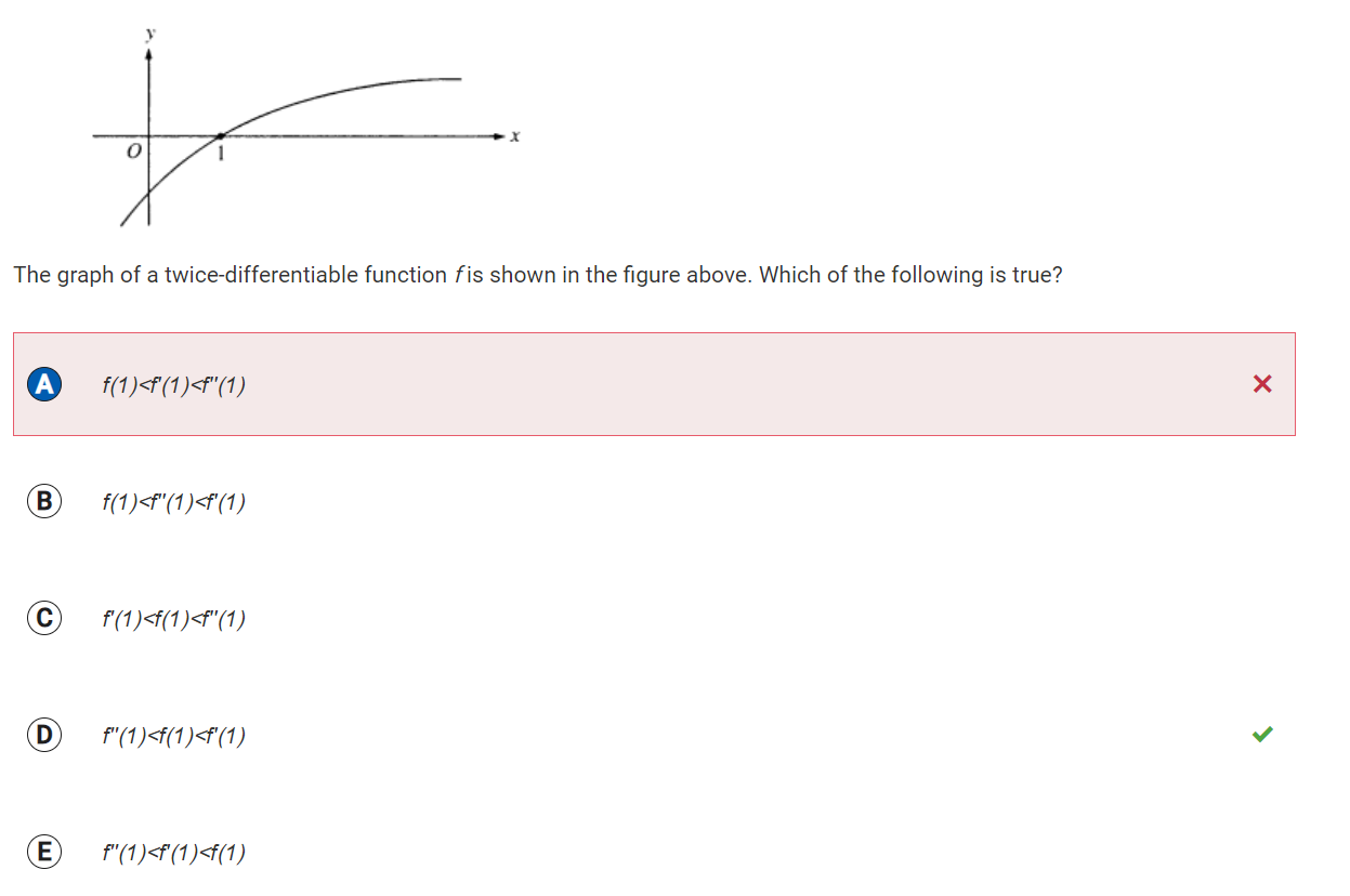 Selected values of f′ and f″ are shown in the table above. Which of the following is true? Look at the graph where the vertical line at x = 1 intersects the curve of the function. Note that there is a derivative at x = 1, and that the.