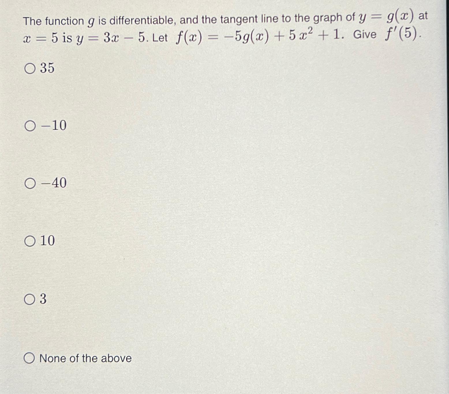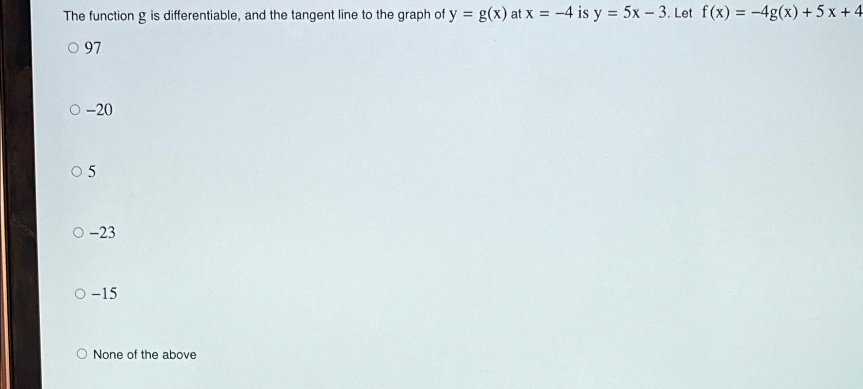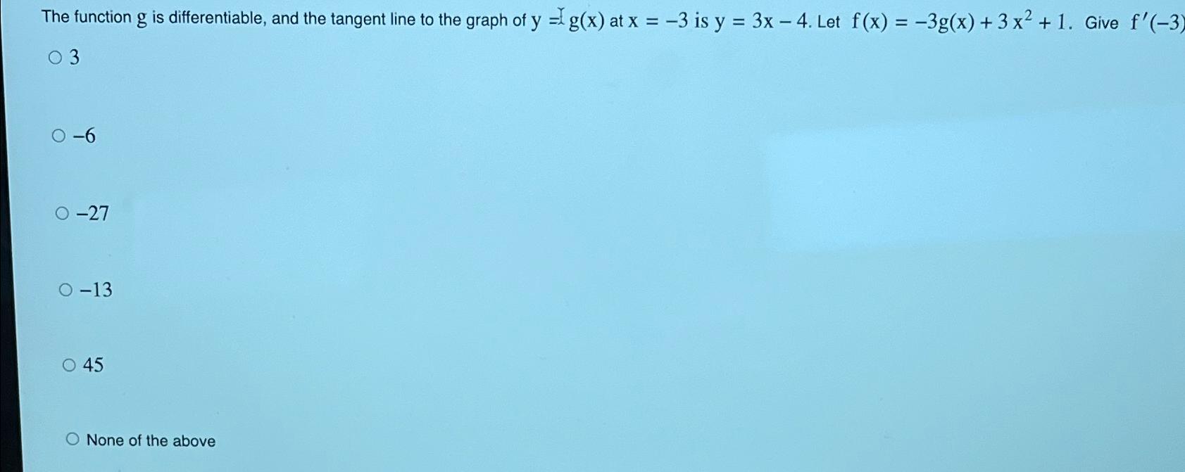 Solved The function g is differentiable, and the tangent