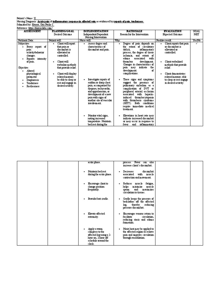 Nursing Diagnosis Nursing Diagnosis For Deep Vein Thrombosis