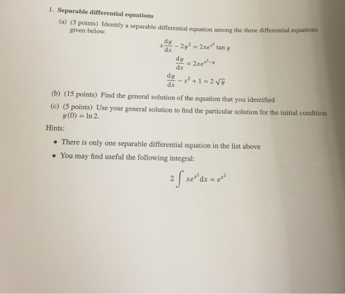 Solved Separable differential equations Identify a
