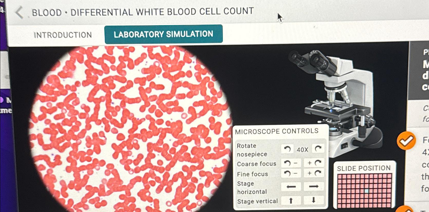 The white blood cell differential. Do a differential blood cell count on this slide. A great resource for practicing white blood cell identification! Do this by scanning across the specimen from left. The advanced white blood cell differential simulator, produced in collaboration with the.